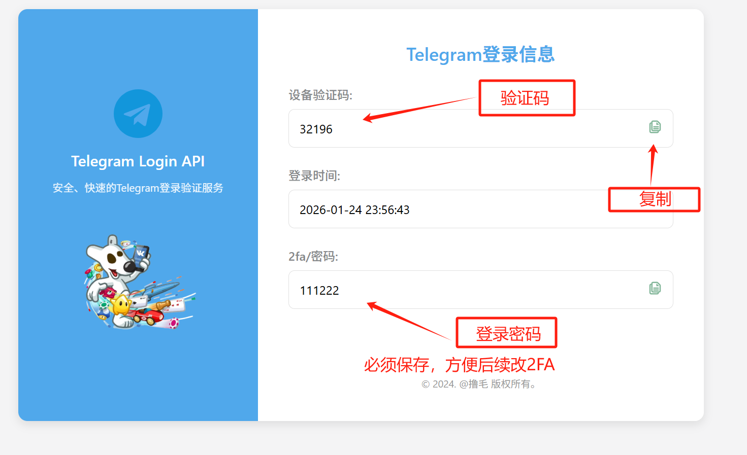 <mark style="color:$success;">**4.然后打开api链接进行接码登录（发货格式后方链接）**</mark>